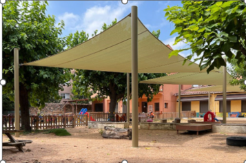 - Instal·lació d’estructures d’ombreig tipus veles, que es puguin col·locar durant la temporada estival i retirar a la tardor de cara al seu millor manteniment i també per l’aprofitament de la llum solar en l’època hivernal.